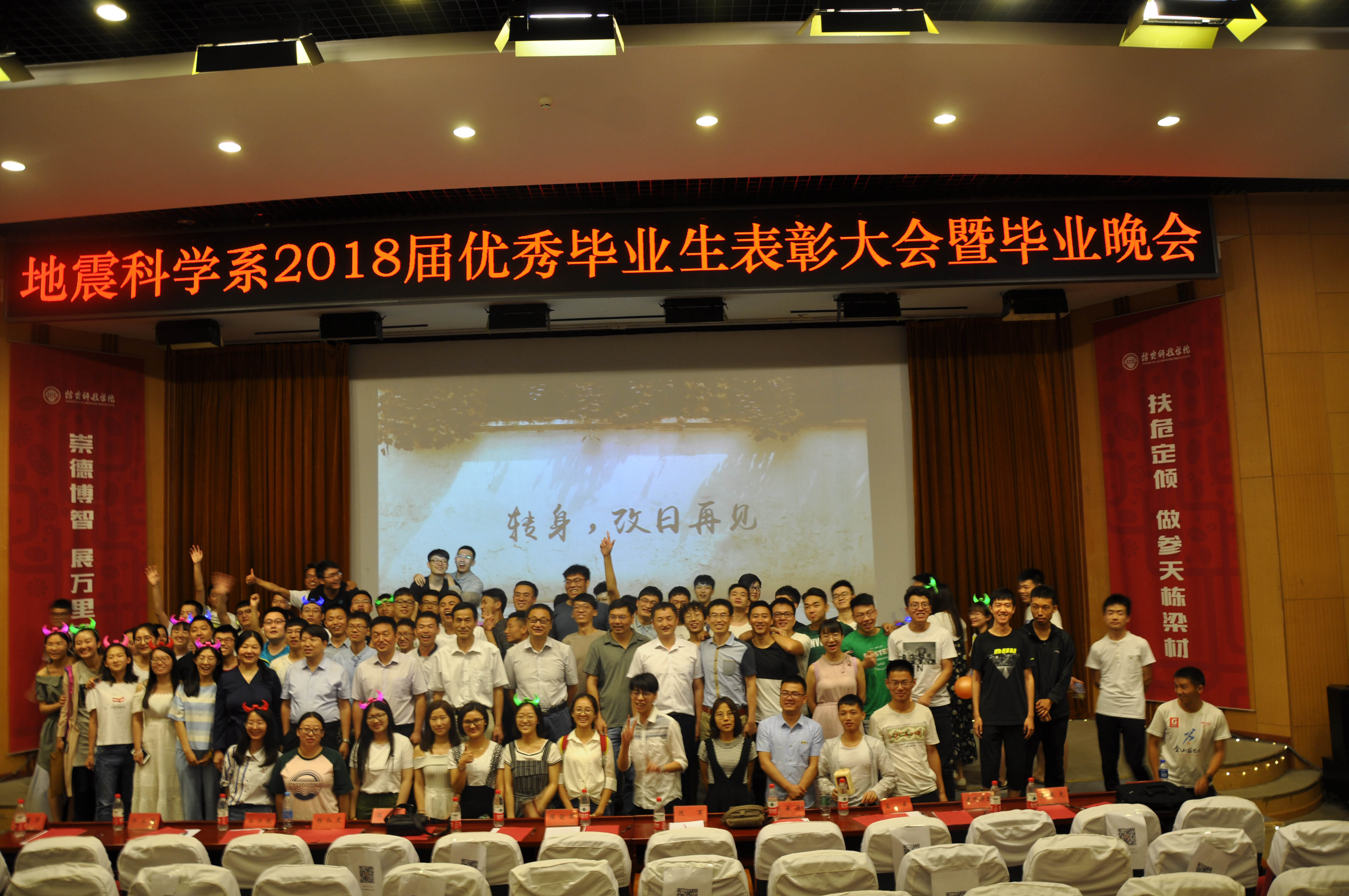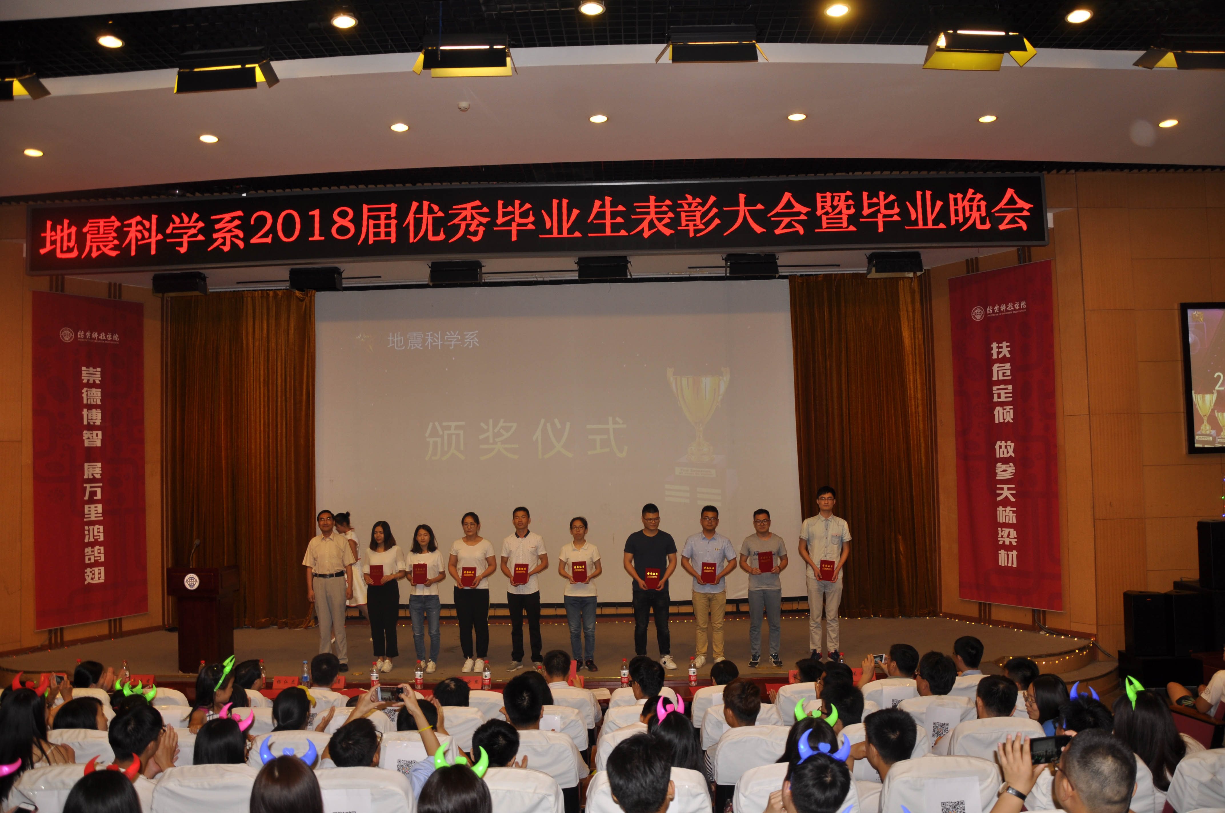 6月7日晚,地震科学系在南校图书馆报告厅隆重举行2018届优秀毕业生表彰大会暨,学院学生工作处处长侯逾昆、系主任沈军、系党总支书记达勇、系副主任谷洪彪以及各教研室主任、全体辅导员参加了表彰大会,大会由系团总支书记唐圣华主持。