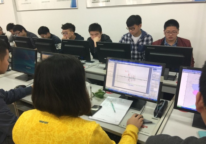 图片:2016-2017学年第1学期地球物理专业学生在进行地震预测实习和讨论