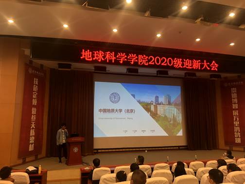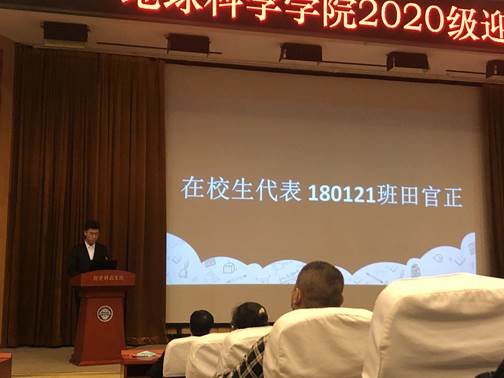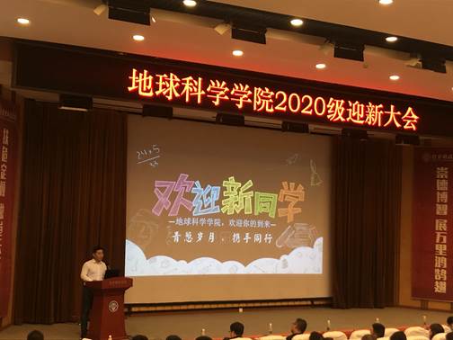 大会在嘹亮的国歌声中开幕,与会的学院领导、学科带头人、教授、各教研室主任和教师代表先后亮相,展现了英国365官网雄厚的师资力量和良好的教师风采。会上,教师代表关成尧副教授首先发言,引经据典,对投身地学的新鲜血液表示欢迎并给予殷殷希望。优秀校友代表郭明明风趣幽默的辞藻、令人羡慕的学生履历,燃起了学生们奋勇上进的激情,将大会推向了高潮。在校生代表田官正和新生代表冯天杰依次做了热情洋溢的发言后,学院院长姜纪沂教授做了语重心长,情真意切的致辞。