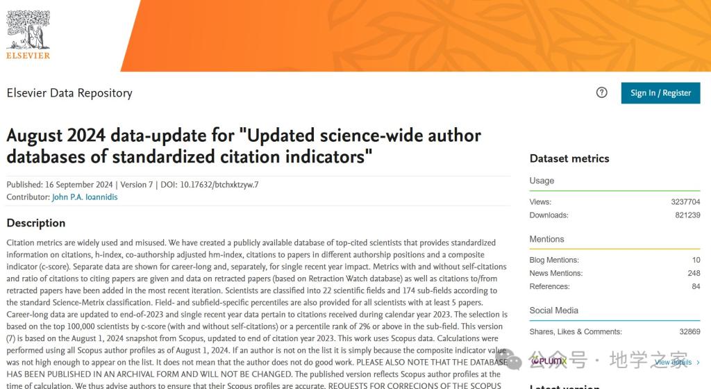 该榜单是斯坦福大学John P. A. Ioannidis教授团队与Elsevier的合作成果。榜单基于Scopus数据库的引用数据系统分析,依据总引用量、Hirsch H-index、共同作者修正Schreiber Hm-index、单独作者、单独或者第一作者以及单独、第一或者最后作者文章引用量等六种指标进行综合评定,从近700万名科学家中遴选出世界排名前2%的科学家,分为22个领域和174个细分子领域。榜单提供了面向科学家长期科研表现的衡量指标,客观真实反映科学家的学术影响力。
