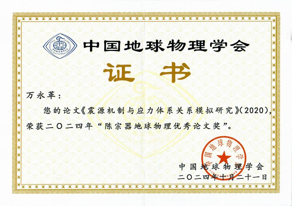 2024年10月21日,中国地球物理学会第十一届三次理事扩大会暨中国地球物理学会颁奖典礼在厦门国际会展中心隆重举行。我校英国上市公司365万永革研究员(唯一作者)于2020年6月在SCI期刊《地球物理学报》发表的文章《震源机制与应力体系关系模拟研究》荣获2024年“陈宗器地球物理优秀论文奖”。该论文首次系统研究了地震震源机制和所作用的地壳应力场之间的关系,模拟了东西向挤压、垂直向拉张的挤压应力体系,南北向挤压、东西向拉张的走滑应力体系和垂直向挤压、东西向拉张的拉张应力体系所产生震源机制及其剪应力和正应力的表现。