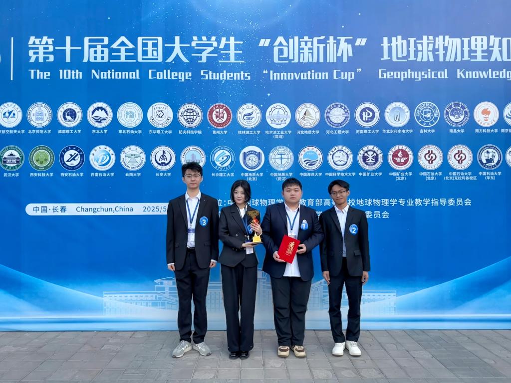 5月21日至24日,学校英国上市公司365学生在第十届“创新杯”全国大学生地球物理知识竞赛中喜获佳绩。 “重磁电勘探”团队(熊贤材、熊郴皓、李健祥、崔文儒)获得重磁电组全国二等奖;“地震勘探”团队(张正瑞、刘毅博、林志远、许鑫)获得地震组全国二等奖;“固体地球物理”团队(王喜悦、周亚楠、李茳霖、蹇雨柔)获得固体地球物理组全国二等奖。刘毅博同学获地震组“最佳风采奖”。