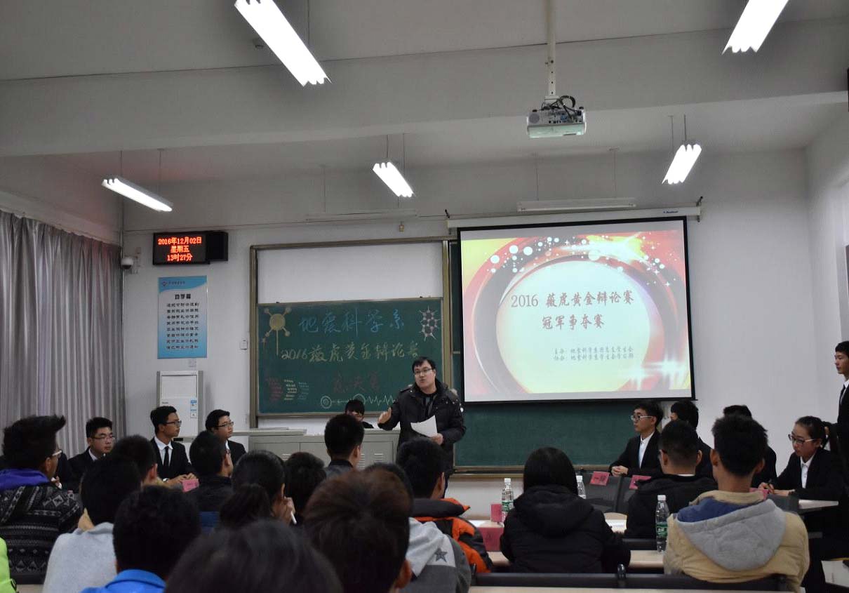 比赛现场气氛严肃紧张,各队都十分遵守仪态礼仪,同样反映出学生较好的比赛素质。在观众提问环节中,观众的积极参与,辩手们的巧妙回答,形成赛场中的一大亮点。在地震科学系团总支书记唐圣华老师的点评中,首先表达了对同学们表现的肯定,并且指出在赛场上应更加注重“思辨”能力与对辩题领悟能力的发挥,最后提出了对地震科学系的辩论赛举办成功的肯定和希翼。到此地震科学系2016薇虎黄金辩论赛也画上了圆满句号。