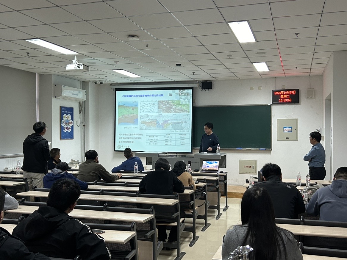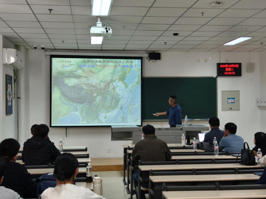付碧宏研究员为大家介绍了青藏高原北部大型走滑断裂构造特征、走滑断裂的地貌响应以及活动断层的致灾机理。并以阿尔金断裂为例,结合大量野外工作讲授了走滑断裂与地震灾害风险评估的方法和内容。裴军令教授为大家介绍了南极新生代古地磁场变化的研究背景与科学意义、目前获取的进展、研究思路与技术方法,以及预期的成果与未来设想。郑文俊教授为大家详细介绍了活动地块边界带的概念、划分依据及主要活动地块的构造特征。并结合近年来在鄂尔多斯活动地块北边界利用古地震探槽、高精度地貌测量获得的万年尺度的强震序列,研究了该边界带强震复发规律与迁移特征。会后,与会师生与专家进行了深入交流和讨论。